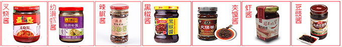 调味酱灌装机广泛适用于各种(含颗粒)酱料的灌装,如:香菇酱、辣椒酱、牛肉酱、番茄酱、沙拉酱、叉烧酱、夹馍酱、麻辣酱、卤肉酱、黑椒酱、豆豉酱、甜面酱、蒜蓉酱、拌饭酱、下饭酱、鱼滋酱、虾酱等产品。该款辉达娱乐